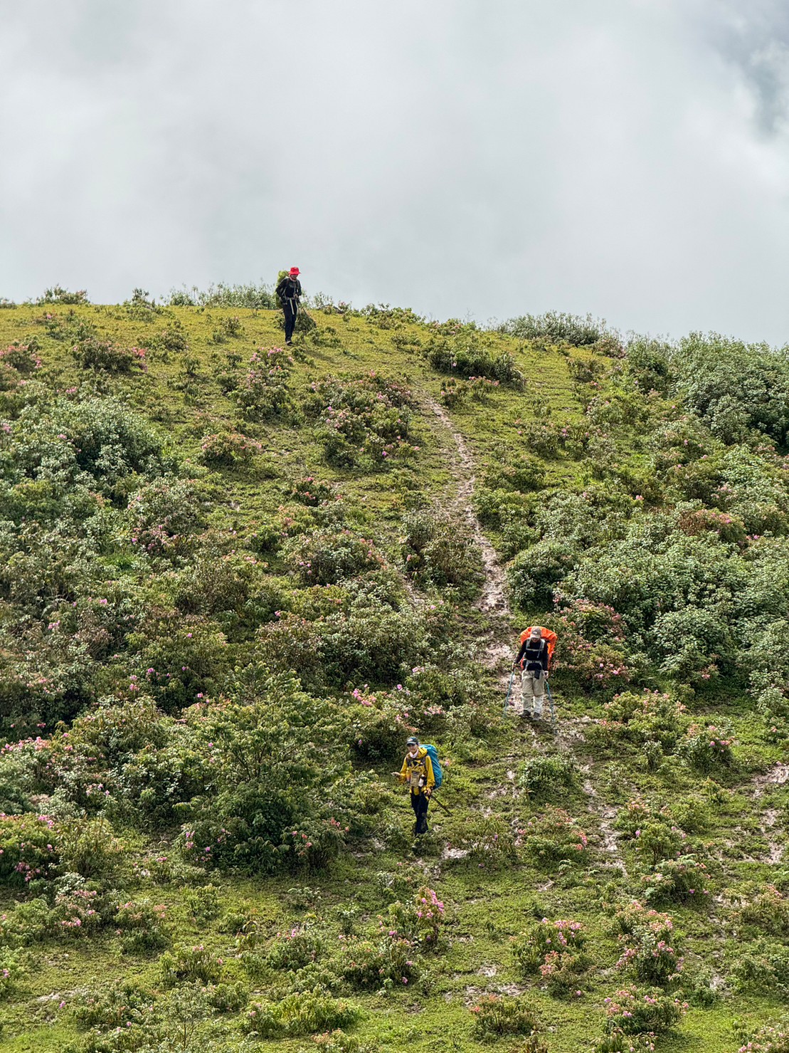 เช้าวันนี้ ดูพระอาทิตย์ขึ้นที่หว่าวาโจ ไม่ห่างจากที่พักเรามากก็คือหน้าเต็นท์เลยครับ แต่รับรองว่าวิวสวยแน่นอนครับ ช่วงสายๆ แดดแรงๆ รับประทานอาหารเช้า ก่อนจะเก็บกระเป๋า ออกเดินทางตามไหล่เขาไปยังจุดต่อไปที่เกล่อห่าโข่สี่ หรืออีกชื่อว่าดอยหงอนไก่ครับ