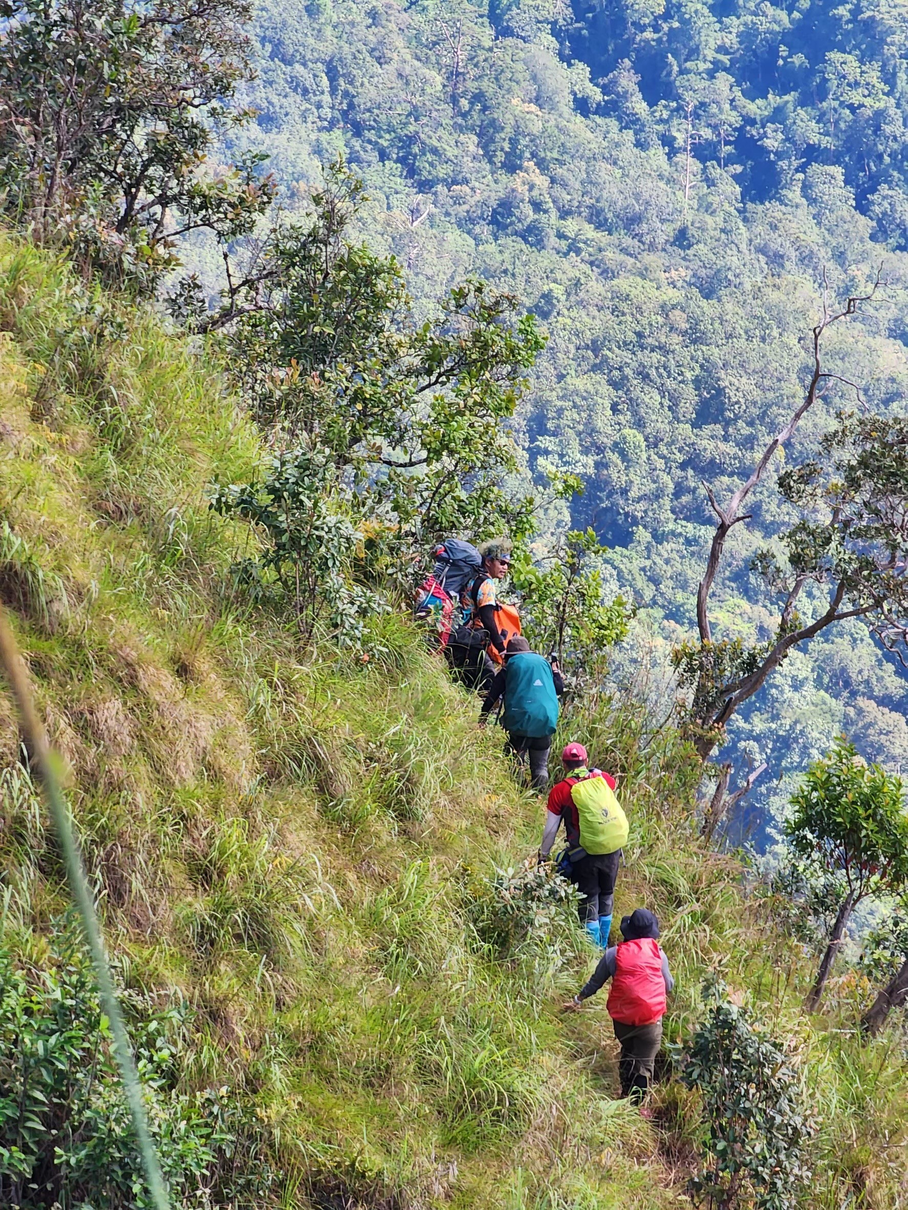 ใช้เวลาเดินท่ามกลางความสวยงามของธรรมชาติ และแสงแดดที่แผดเผา รวมไปถึงไฮไลต์สันคมมีด ที่ค่อนข้างอันตราย ใครไม่ไหว ไม่มีทางให้กลับนะครับ ต้องไปเรื่อยๆ กลับตัวก็ไม่ได้ กลับใจหันหลังกลับก็ไกลเหลือเกิน แต่ไม่เป็นไรครับ ทีมงานเรามืออาชีพเรื่องกลัวความสูงแน่นอน ยังไงก็ช่วยได้ไม่เยอะ แต่พารอดแน่ๆ บ่ายแก่ๆ ทุกคนน่าจะถึงลานกางเต๊นท์ดอยปุยหลวงกันแล้ว ก็กางเต๊นท์ พักผ่อนให้เรียบร้อย ใครยังไม่หมดแรง จะขึ้นไปชมวิวอาทิตย์ตกที่ยอดเขาหรือหมุดทหารเสือ แล้วค่อยมาทานข้าวเย็น ปาร์ตี้กันเบา ๆ ก่อนเข้านอนอย่างเร็วไว